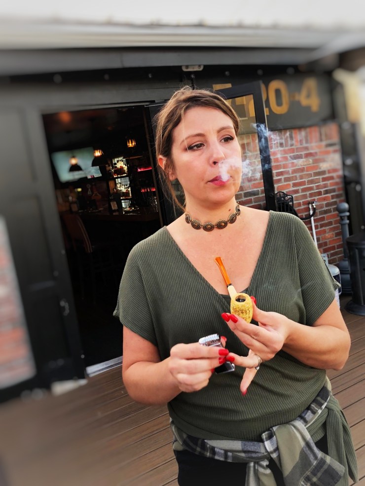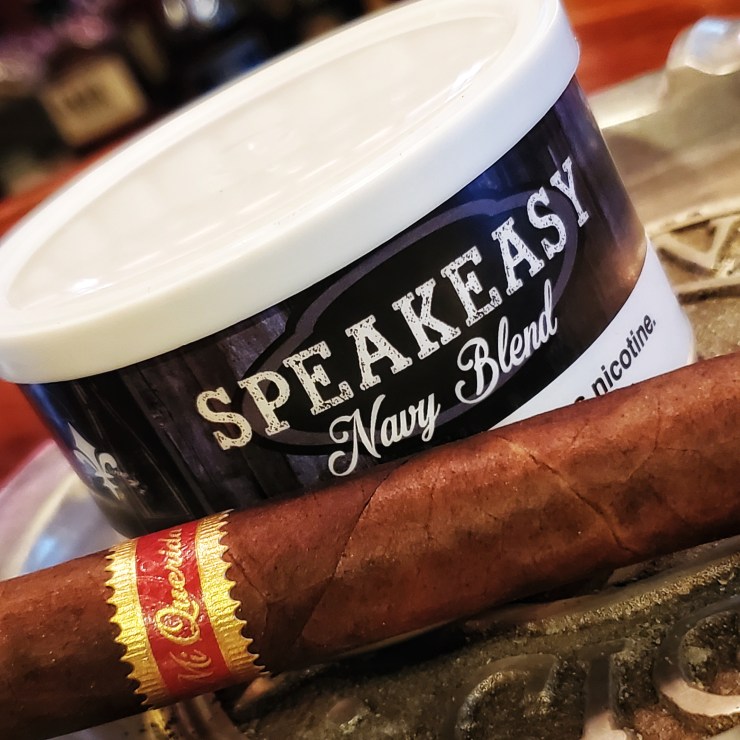 Our guest, Mark Mormar, introduced us to one of his favorite blends from Cornell and Diehl–Speak Easy, a navy flake made with a rare Virginia leaf only used in 3 blends (C&D produces over 400). Kendra brought her own award winning Patina Fashioned cocktail to pair with it. Her spin on the classic Old Fashioned was 7-20-4 Single Barrel Jack Daniels, Grand Marnier, Orange Tea, and brown sugar simple syrup, with a burnt orange garnish. She went the extra mile too, buying a pipe and smoking some Speak Easy herself to settle on her cocktail of choice. Kudos to Kendra!