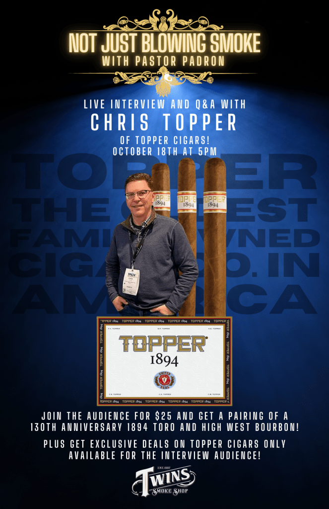 I will be leading an interview with Chris and then opening it up to questions from the audience! Chris is the 4th generation of leadership of Topper Cigar, founded in 1894! We will be smoking his 130th anniversary cigar, the aptly named 1894 Toro, a cigar that features a PA-grown Habano wrapper and USA-seed tobacco grown in the Dominican Republic. We will be talking about the history and importance of American-grown tobacco in the cigar industry, taking the reins of a 130-year-old company (now in a debate with JC Newman over who is the oldest family-owned company operating in America), and where he sees the industry moving. If you are in the area, join us in person and get in on the discussion! You can get more details about the event here.